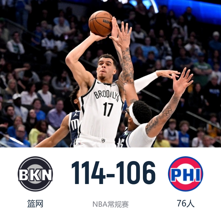 一开场,76人利用主场优势率先发力,连投带罚占据主动,小波特三分3连击独得12分带队反超,恩比德高效输出,双方陷入缠斗,比分始终紧咬,次节76人命中率下降,篮网轰出15-3确立优势,恩比德连投带罚帮助球队止住颓势,半场战罢篮网63-57领先76人。下半场,76人命中率下降,篮网稳扎稳打扩大领先,末节特拉奥雷连得5分帮助篮网将优势扩大到19分,76人奋力反击打出10-0缩小分差,篮网内外开花稳住局势。最终,篮网114-106力克76人,客场过关。