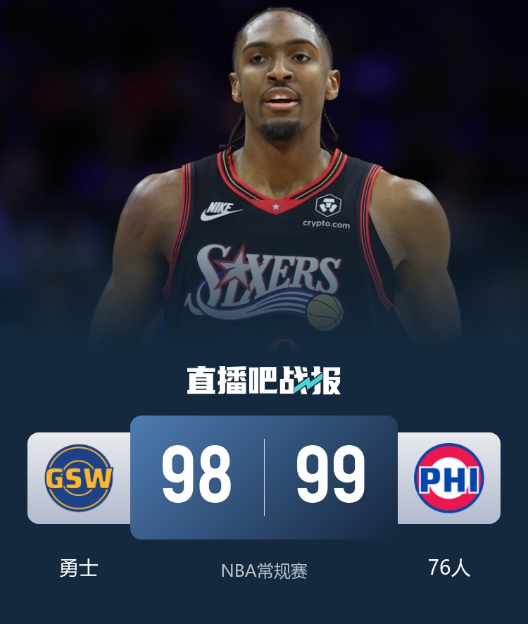 12月5日讯 NBA常规赛继续开打,76人坐镇主场迎战勇士,本场比赛除了库里之外,巴特勒也缺席比赛。